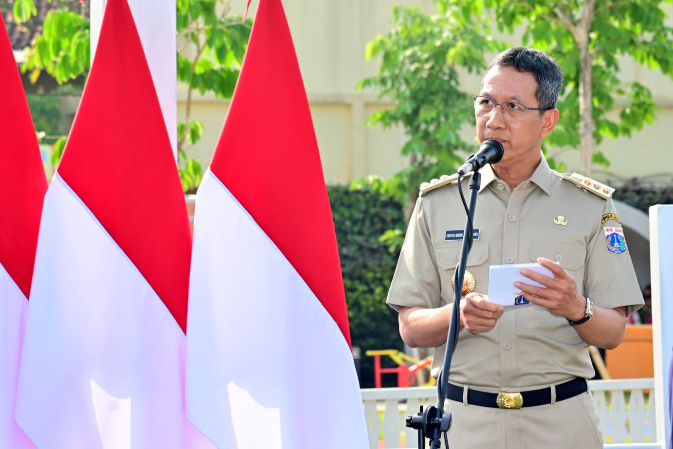 Pj Gubernur DKI Jakarta Heru Budi Hartono memberikan sambutan pada peresmian Sodetan Ciliwung,di Bidara Cina, Jakarta, Senin (31/07/2023) (katafoto/HO/ BPMI Setpres/Muchlis Jr)