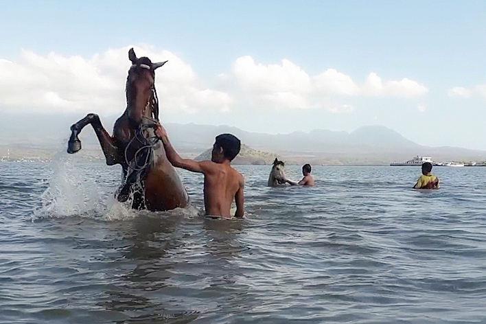 Setiap hari Senin sampai dengan Kamis di kawasan pantai Amahami kuda dipacu dimandikan dan berlari di kedalaman sekitar 1,5 meter di bibir pantai untuk melatih kekuatan otot maupun ketangkasannya sebelum turun ke arena lintasan pacu.
