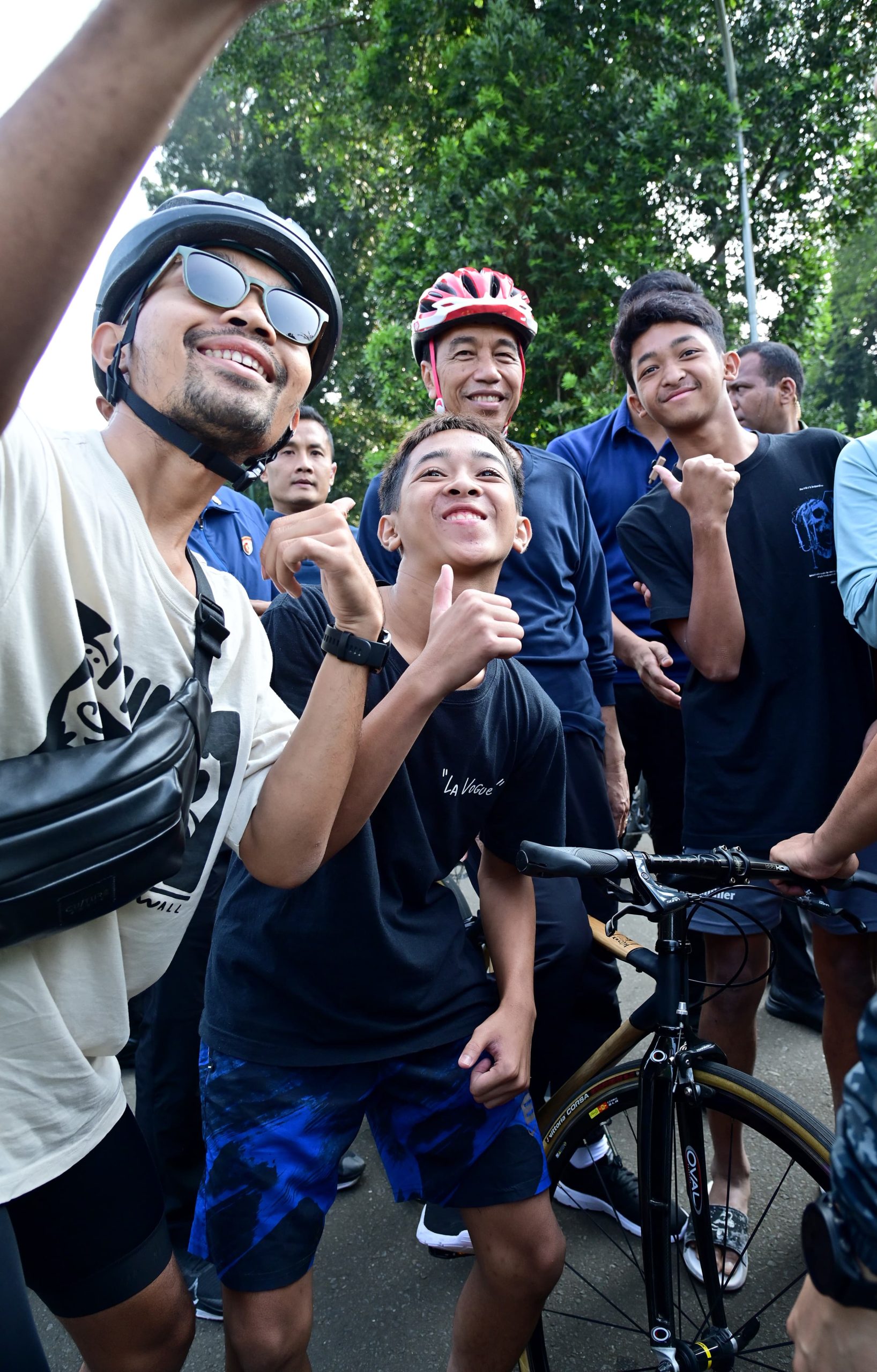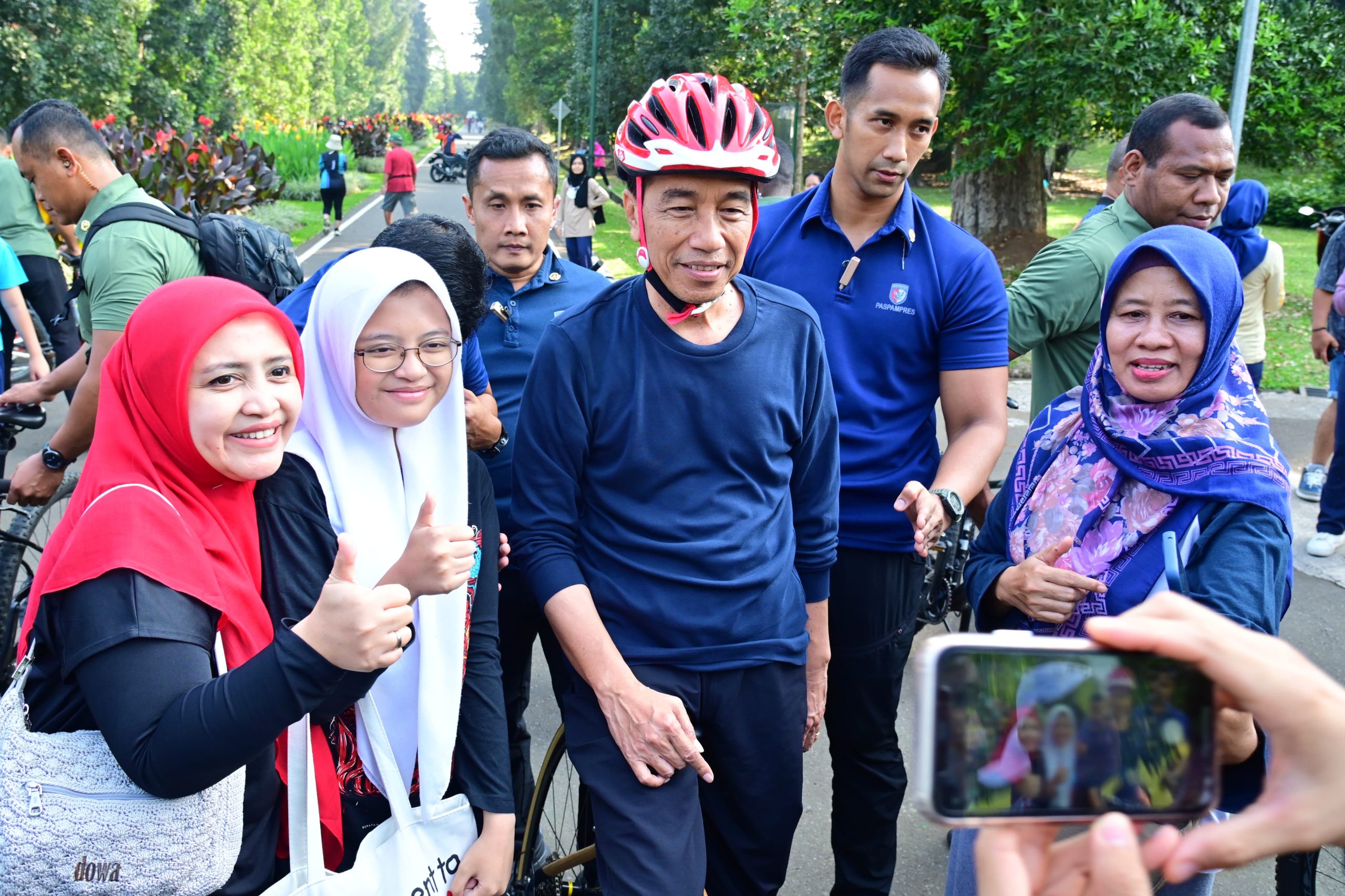 Presiden Joko Widodo memanfaatkan libur akhir pekan pada Minggu (17/9/2023) pagi, dengan bersepeda keliling Kebun Raya Bogor, Kota Bogor, Provinsi Jawa Barat. Sekitar pukul 08.00 WIB, Jokowi mulai mengayuh sepeda dari Istana Kepresidenan Bogor menuju Kebun Raya Bogor.
