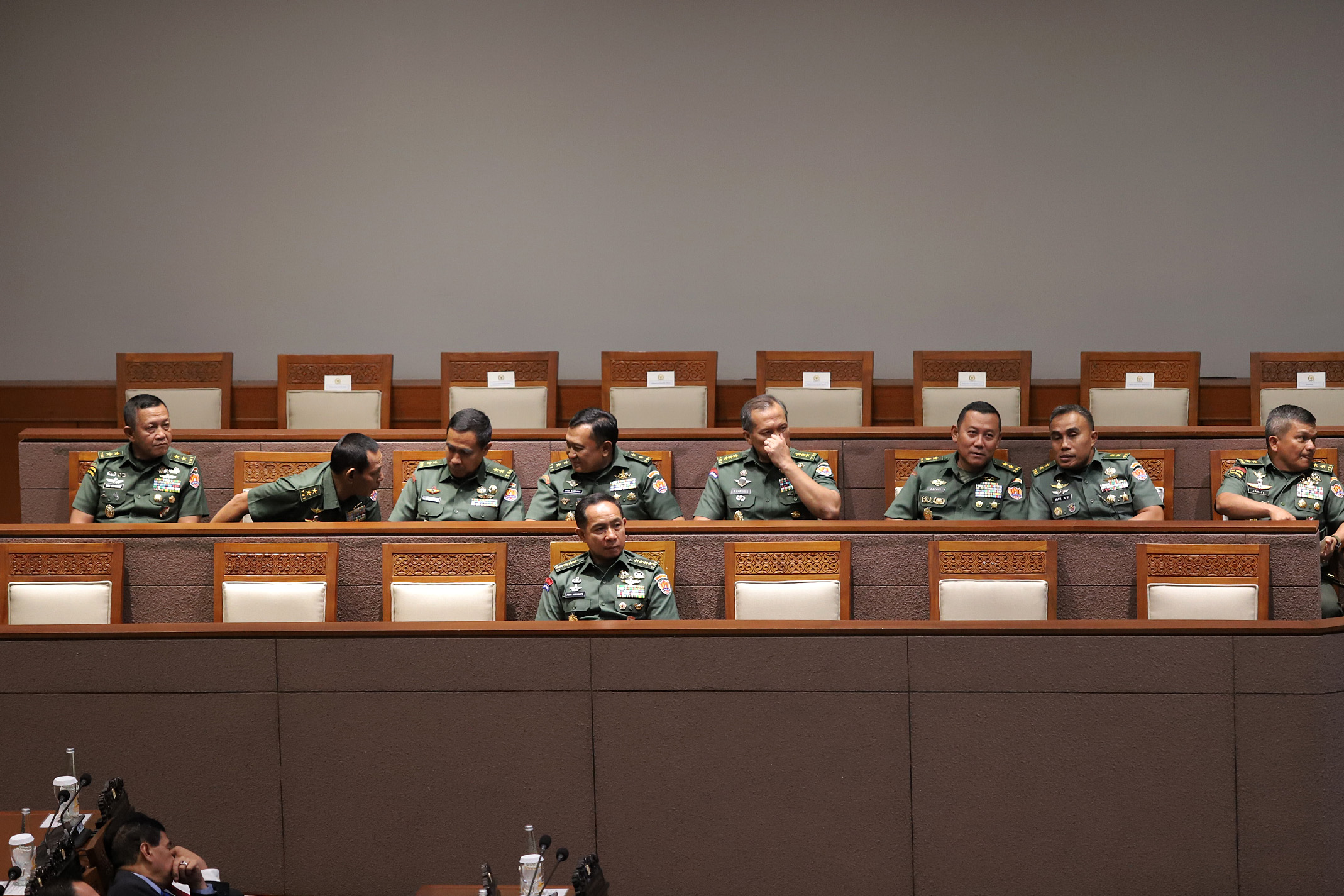 Panglima TNI Jenderal Agus Subiyanto bersama jajaran Jenderal TNI saat Rapat Paripurna Penetapan Panglima TNI di Gedung Nusantara I, Kompleks Parlemen, Senayan, Jakarta, Selasa (21/11/2023). (katafoto/str)