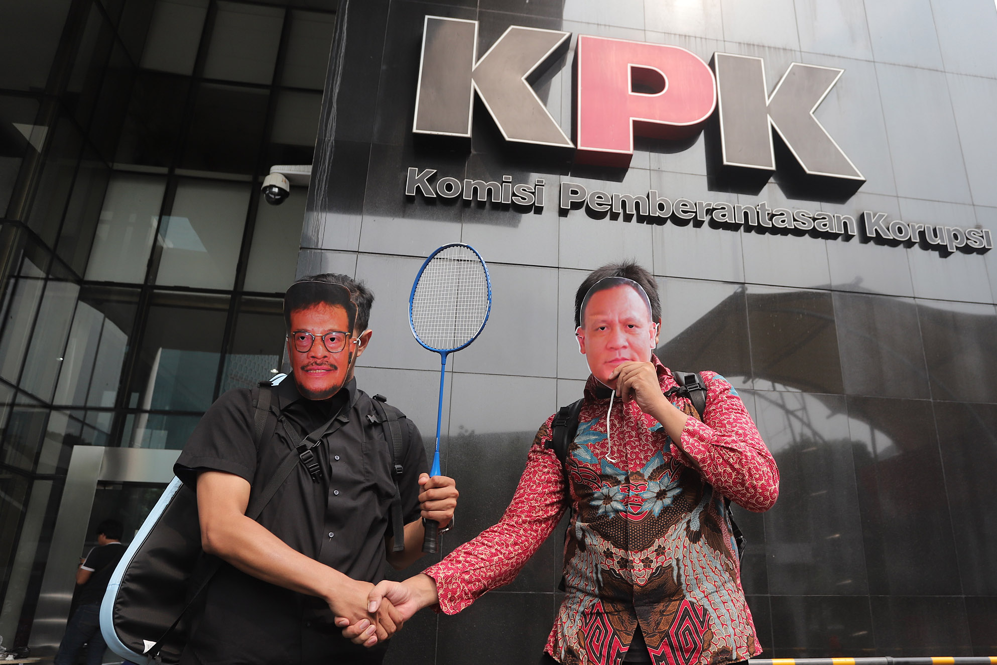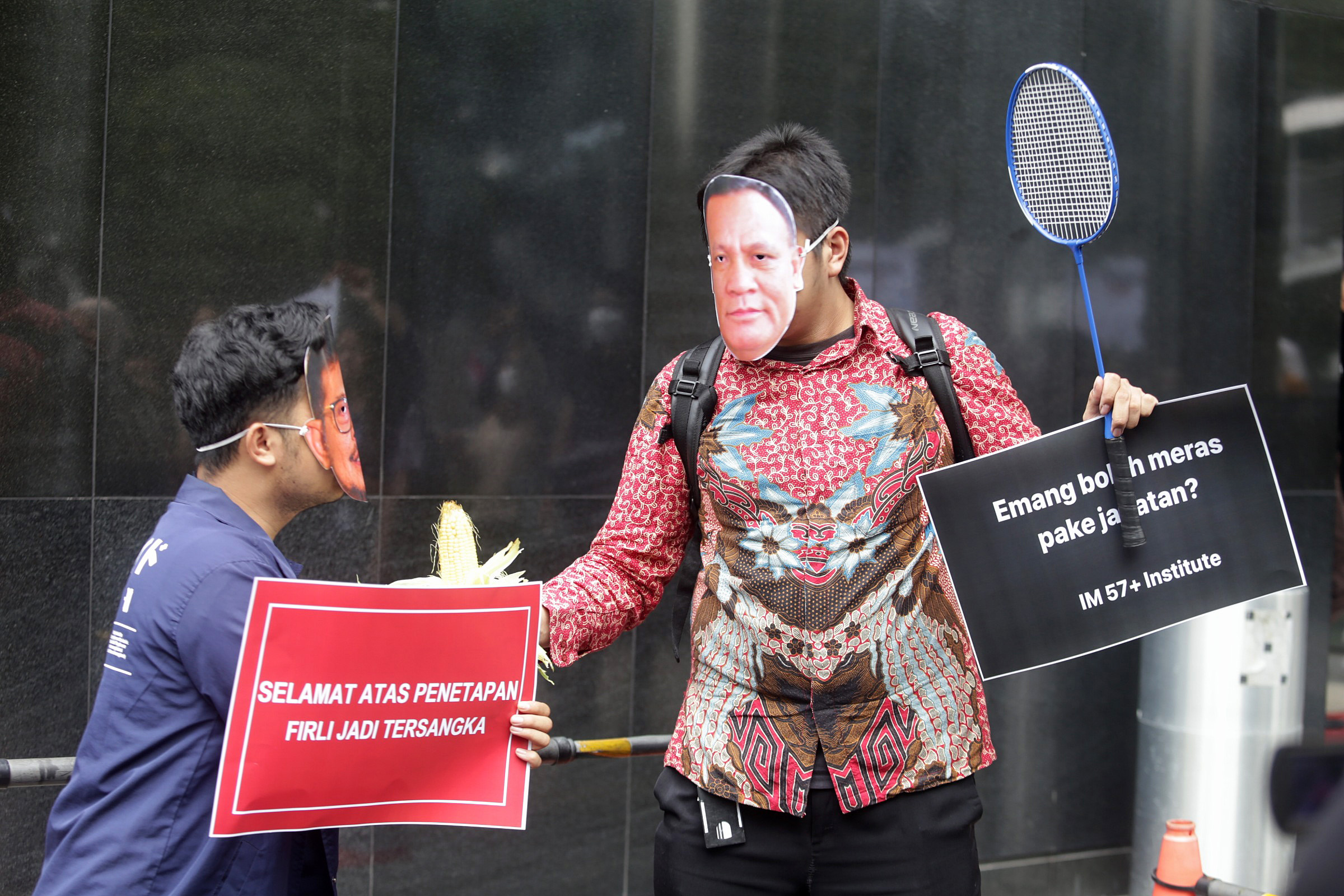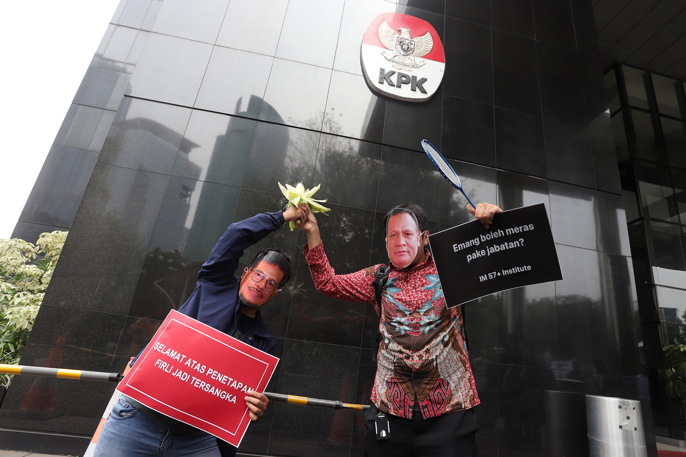 Aksi dengan membawa sejumlah atribut seperti topeng berwajah Firli Bahuri dan tersangka mantan Menteri Pertanian Syahrul Yasin Limpo (SYL), raket dan kok bulu tangkis, karangan bunga hingga gerobak nasi goreng juga dihadiri mantan Pimpinan KPK seperti Abraham Samad, Bambang Widjojanto, Raja Operasi Tangkap Tangan (OTT) Harun Al Rasyid, Eks Ketua Wadah Pegawai KPK Yudi Purnomo, dan mantan penyidik senior KPK, Novel Baswedan.