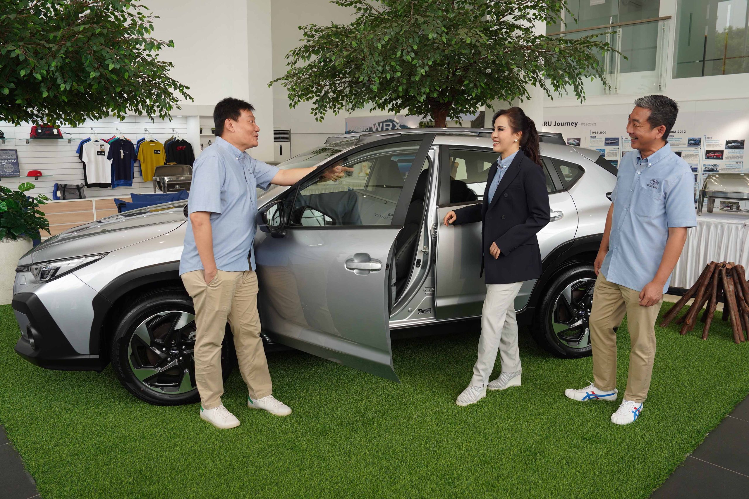(Ki-Ka) CEO Subaru Indonesia Arie Christopher, Board of Director Plaza Capital Group Paula Dewiyanti dan General Manager Operation Plaza Subaru Ricky Aliwarga berbincang di sela pembukaan Plaza Subaru Tebet, Diler 3S (sales, service, & spare part) Subaru kedua di Tebet, Jakarta Selatan, Kamis (23/11/2023) (katafoto/Fery Pradolo)