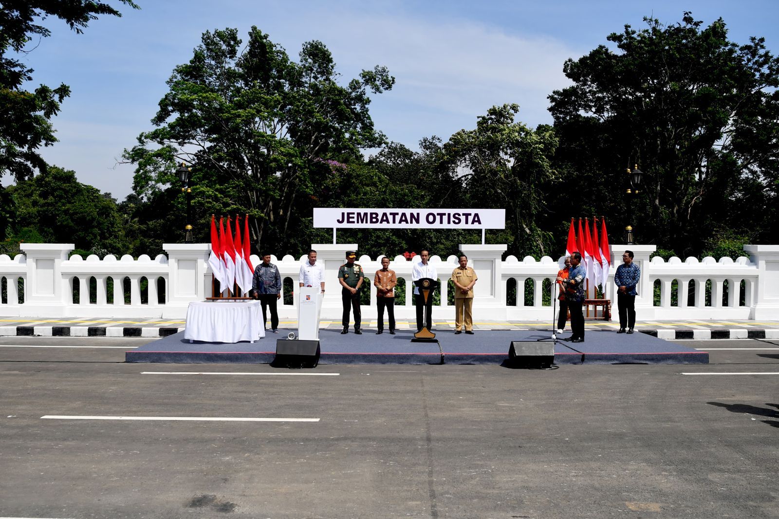Di hadapan awak media seusai peresmian Presiden Jokowi menyampaikan “Jembatan ini—Jembatan Otista ini salah satu menjadi problem di Kota Bogor, karena setelah (jalanan) melebar, menyempit di jembatan ini,” ucap Presiden
