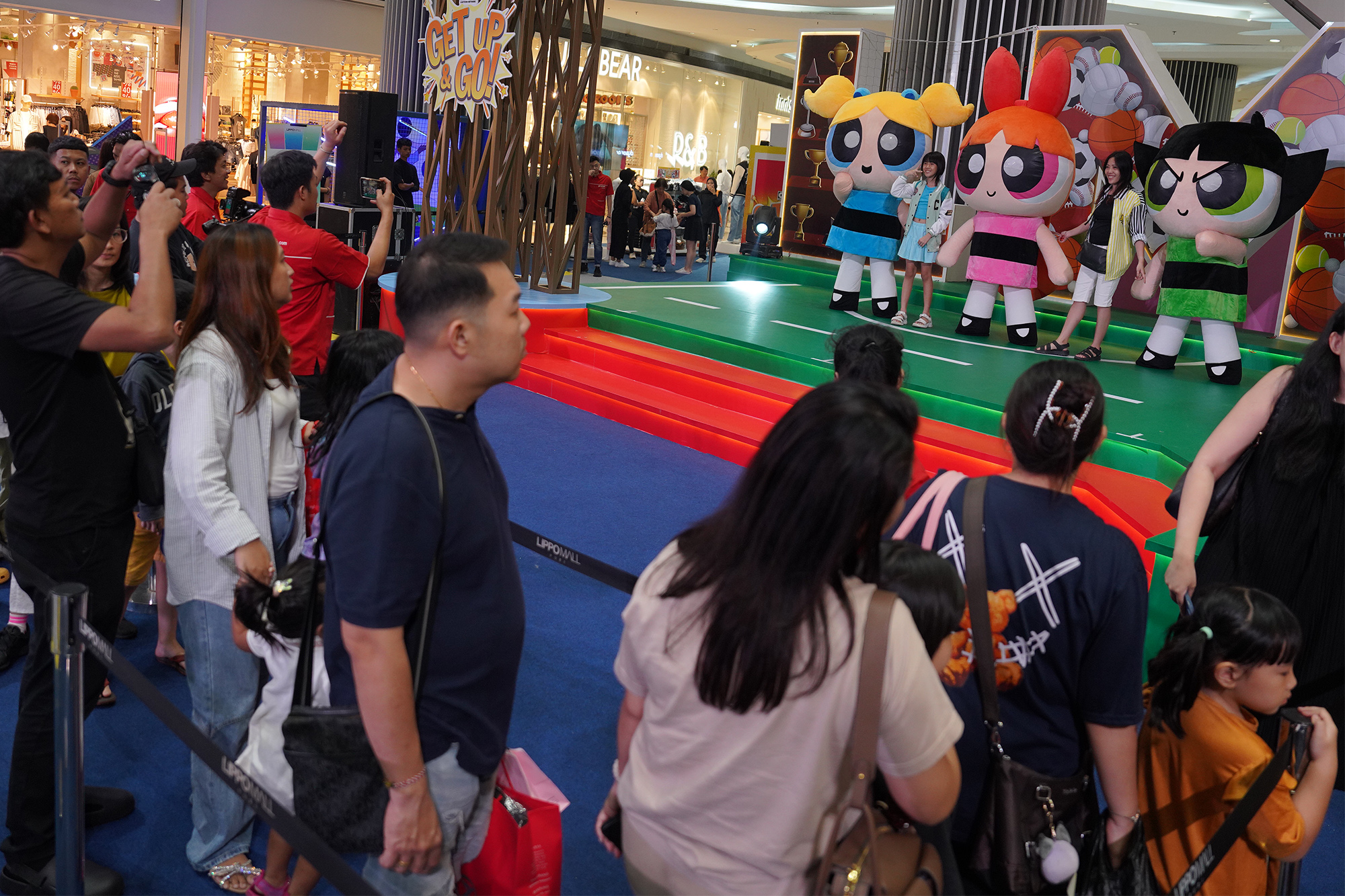 Pengunjung antre untuk foto bersama dengan karakter The Powerpuff Girls pada acara Meet & Greet tiga karakter Cartoon Network yaitu Looney Tunes, The Powerpuff Girls dan We Bare Bears di atrium 2 Lippo Mall Puri, Jakarta (14/06/2024) (katafoto/Fery Pradolo)